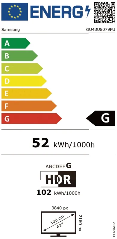 108 cm LED-Fernseher, 43 Zoll, Auflösung: 3.840x2.160 Pixel, Crystal Prozessor 4K, High Dynamic Range (HDR), High Dynamic Range (HDR 10+), Hybrid Log Gamma (HLG), 50 Hz Bildwiederholungsrate, Empfänger DVB-T2 HD, DVB-S2, DVB-C, 2.0 Soundsystem, 20 Watt maximale Gesamtleistung, per App steuerbar, integrierte Sprachsteuerung, kompatibel mit Amazon Alexa, Google Assistant, Samsung Bixby, Smart Things, Internet-Zugriff auf Online-Dienste, SmartTV, Tastatur/Maus über Bluetooth, Tastatur/Maus über USB, WEB-Browser, AirPlay 2, DLNA, WiFi Direkt, Energieeffizienzklasse G (Spektrum A bis G)