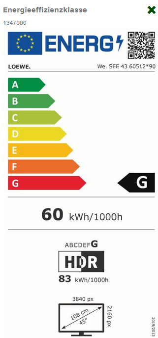 108 cm LED-Fernseher, 43 Zoll, Auflösung: 3.840x2.160 Pixel, 4K Ultra HD, H.265 HEVC, High Dynamic Range (HDR 10), Hybrid Log Gamma (HLG), Dolby Vision, Empfänger DVB-T2 HD, DVB-S2, DVB-C, Dolby Digital Plus, Remote App kompatibel für iPhone, iPad, Android, per App steuerbar, kompatibel mit Amazon Alexa, Internet-Zugriff auf Online-Dienste, Radiofunktion bei DVB, USB-Recording, USB-TimeShift, WEB-Browser, WLAN, Digital Media Renderer (inkl. Ultra-HD, Übertragung von Bildern, Filmen und Musik vom Smartphone oder Tablet), Screen Mirroring (einfache Verbindung mit Wi-Fi fähigen Geräten), Energieeffizienzklasse G   (Spektrum A bis G)