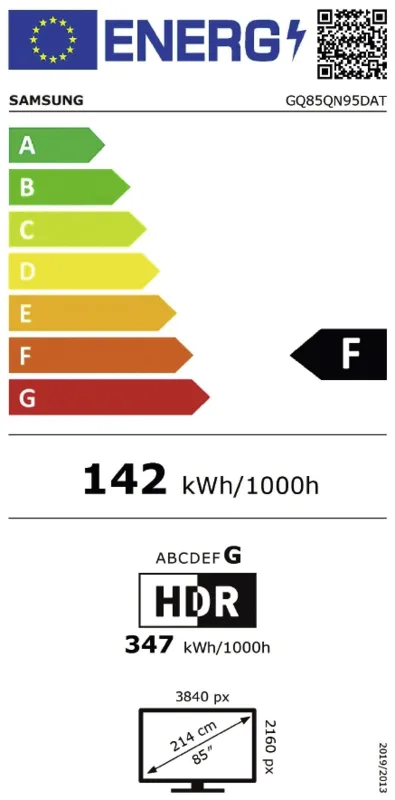 214 cm LED-Fernseher, 85 Zoll, Auflösung: 3.840x2.160 Pixel, 4K Ultra HD, 4K AI Upscaling, Antireflexbeschichtung, H.265 HEVC, Neural Quantum 4K AI Gen2 Prozessor, Neo QLED-Technologie, Quantum Matrix Technologie, High Dynamic Range (HDR 10+), High Dynamic Range (Neo Quantum HDR+), Hybrid Log Gamma (HLG), 100 Hz Bildwiederholungsrate, Quantum Dot-Technologie, DVB-T2 HD, DVB-S2, DVB-C, Twin-Tuner für Aufnahme, 4.2.2 Soundsystem, Dolby Atmos, 70 Watt maximale Gesamtleistung, per App steuerbar, integrierte Sprachsteuerung, kompatibel mit Amazon Alexa, Samsung Bixby, Smart Things, Internet-Zugriff auf Online-Dienste, SmartTV, Ambient-Modus, AMD FreeSync Premium Pro Technologie, Tastatur/Maus über Bluetooth, Tastatur/Maus über USB, TV Plus, USB-Recording, USB-TimeShift, WEB-Browser, AirPlay 2, Bluetooth Audio-Unterstützung, DLNA, WLAN, WiFi 5, WiFi Direkt, Energieeffizienzklasse F (Spektrum A bis G)